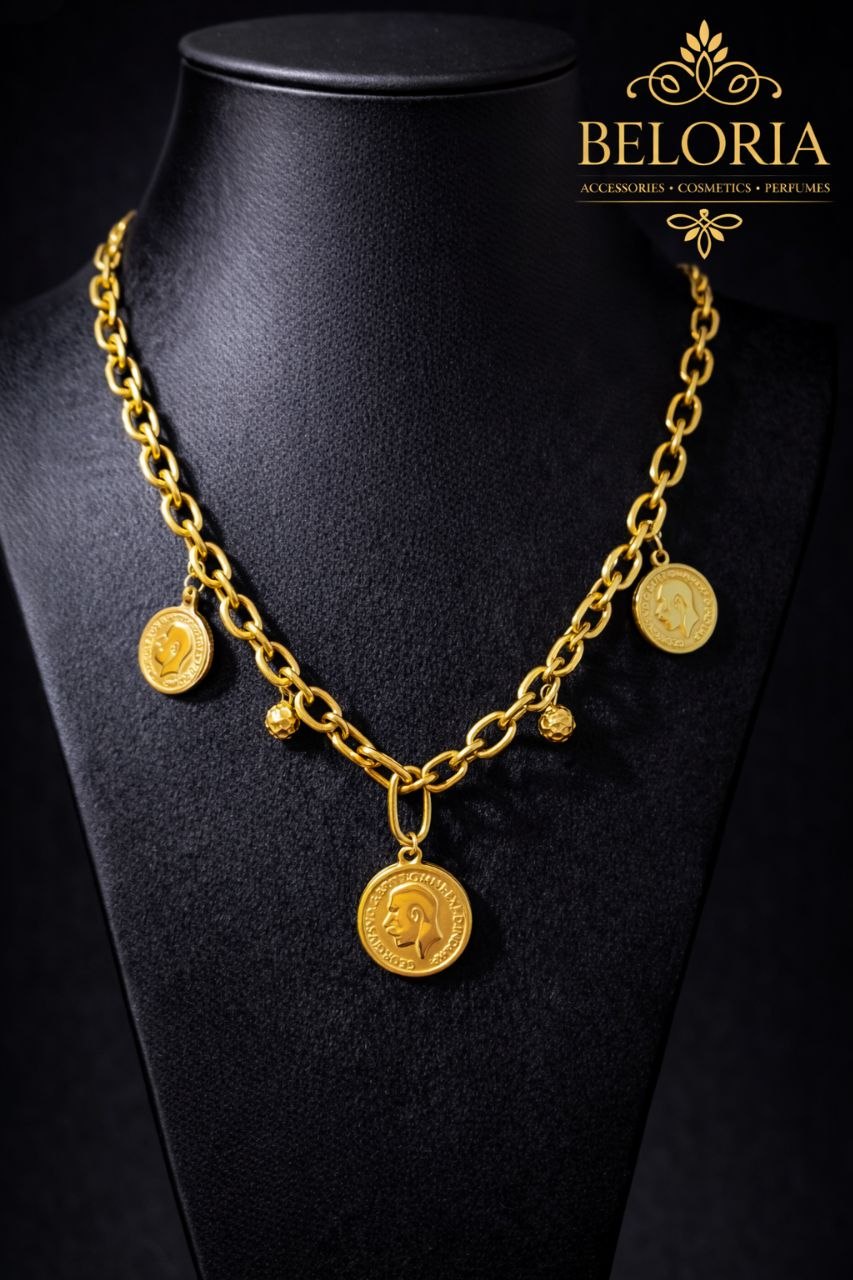 تصميمها الأنيق يجعلها مناسبة للخروجات واللبس اليومي كما تكمل اللوك الشيك بسهولة، بينما تضيف بدلايات العملات لمسة مميزة تجعلها قطعة غير عادية في أي كوليكشن. اختيار رائع لكل من تبحث عن كولية تمنح الإطلالة طابعًا أكثر أناقة ووضوحًا بدون مجهود.