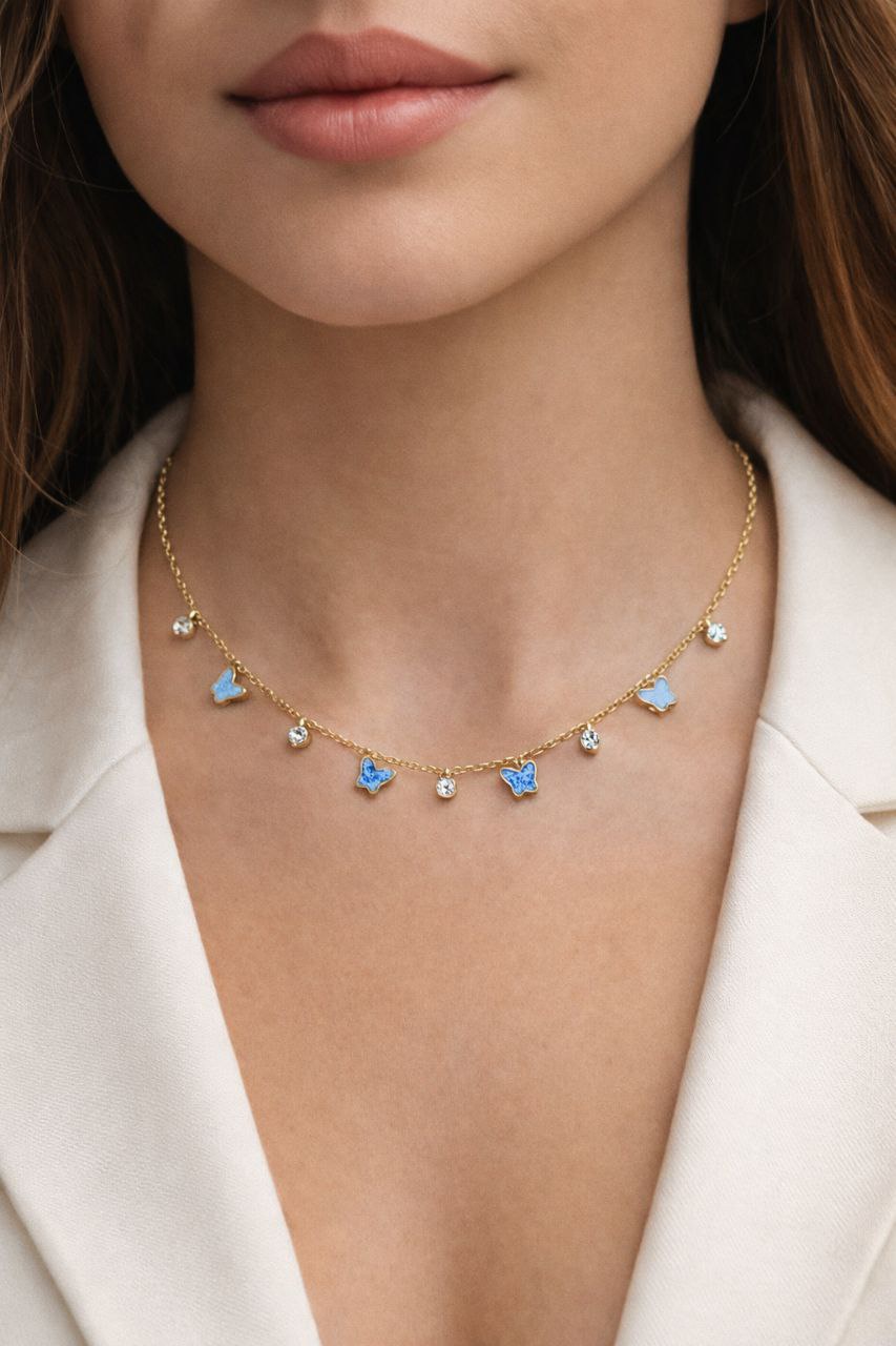 كوليه فرفشة من الاستانلس البيور مطلي بماء الذهب ومزين بفصوص زركون لامعة، مقاوم للصدأ ومناسب للاستخدام اليومي ويكمل اللوك الكاجوال والشيك.