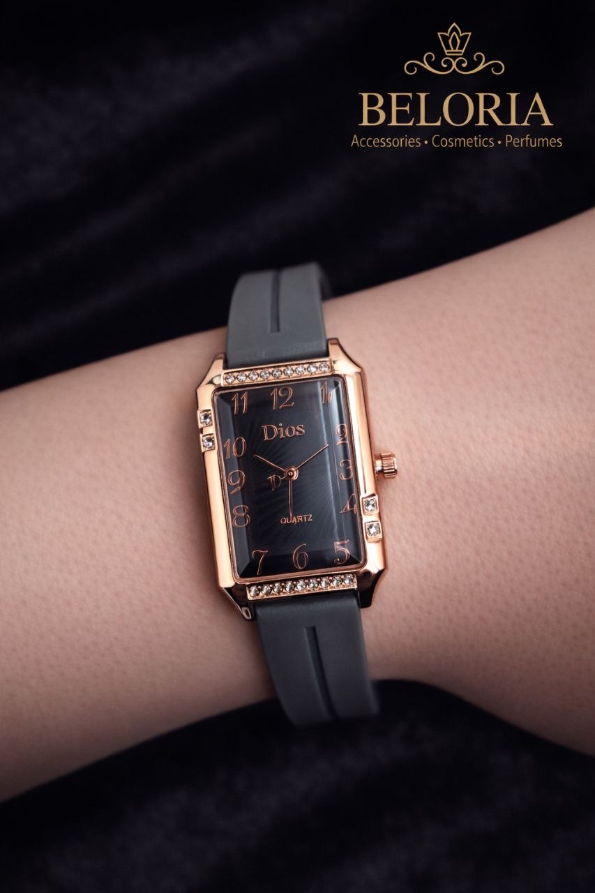 ساعة حريمي عصرية بحزام رابر طبي مريح وظهر استانلس بيور مقاوم للصدأ، مزينة بفصوص زركون لامعة، خفيفة وعملية ومناسبة لكل الإطلالات اليومية.