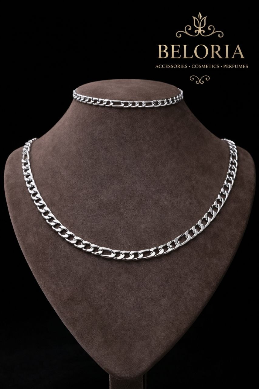 طقم سلسلة وانسيال Chain Style من الاستانلس البيور، مناسب للرجال والنساء، مقاوم للصدأ وتغير اللون، بتصميم ترندي أنيق يناسب اللوك الكاجوال والشيك.