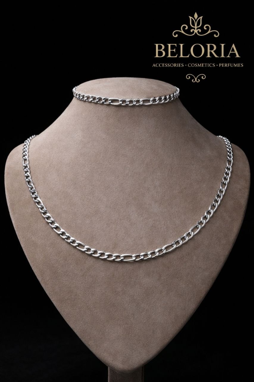 طقم سلسلة وانسيال Chain Style من الاستانلس البيور، مناسب للرجال والنساء، مقاوم للصدأ وتغير اللون، بتصميم ترندي أنيق يناسب اللوك الكاجوال والشيك.