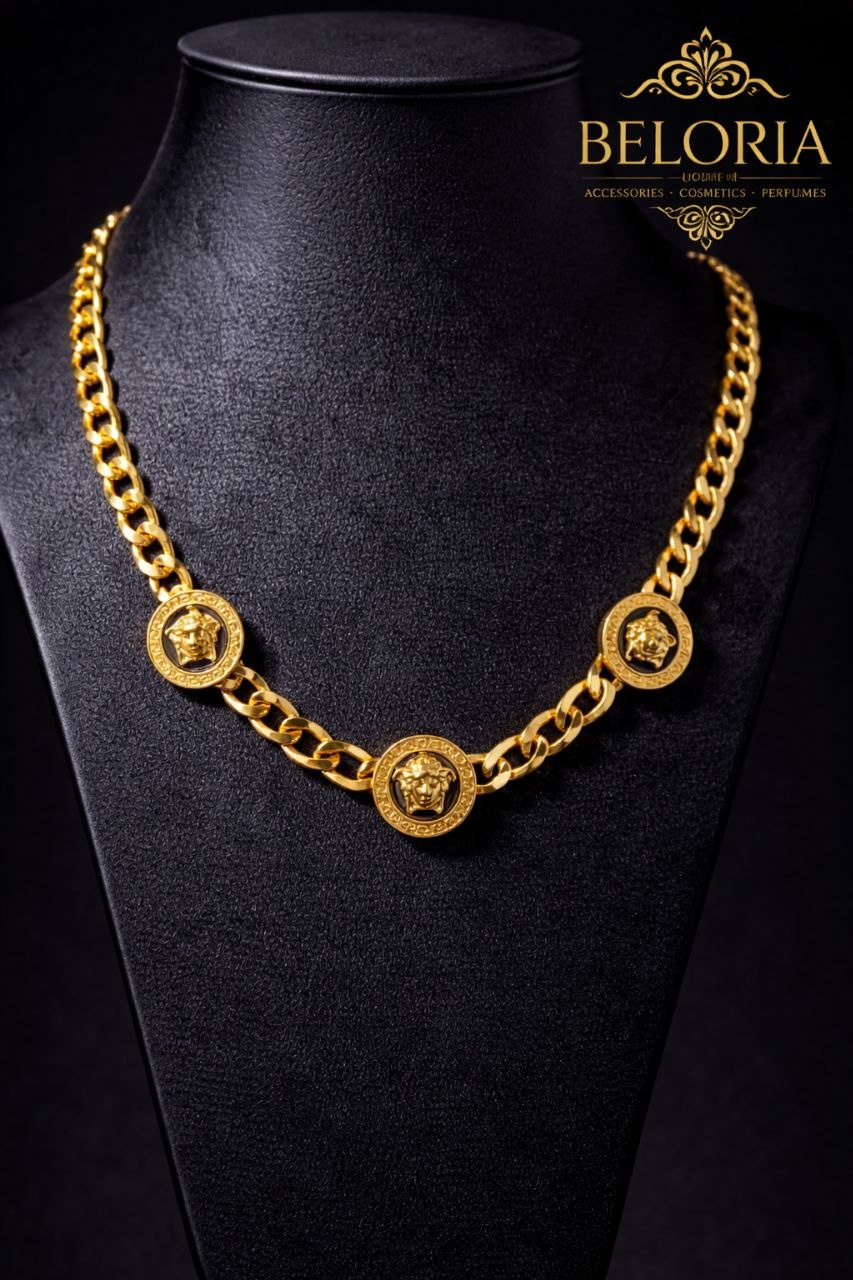 كولية ستايل فيرزاتشي بتصميم راقٍ ولمسة فخامة واضحة تضيف حضورًا مميزًا لأي إطلالة. تتميز بشكل قوي وأنيق في نفس الوقت، لتكون قطعة مثالية لكل من تحب الإكسسوارات التي تلفت النظر بسهولة وتمنح اللوك طابعًا شيكًا وواثقًا.